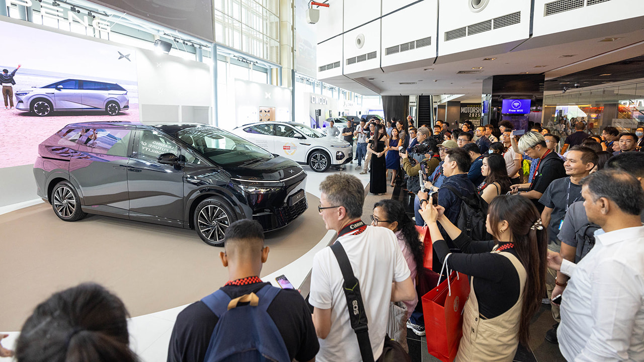 XPENG presenta por primera vez a nivel mundial su XPENG X9 con volante a la derecha en el Salón del Automóvil de Singapur 2025.